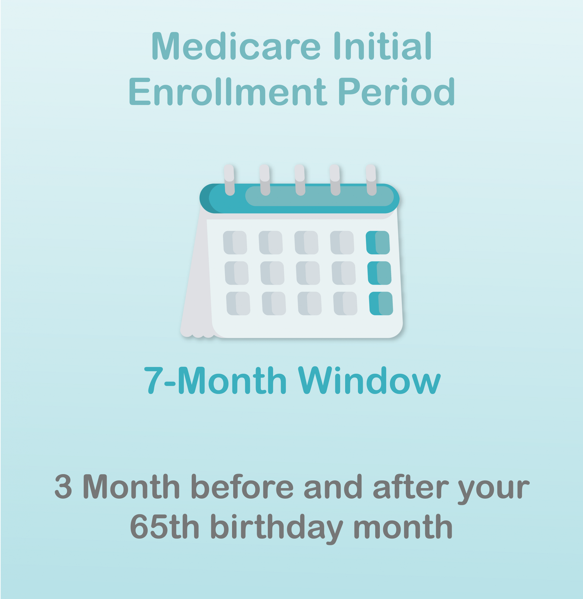 Your Initial Enrollment Period (IEP) begins 3 months before your 65th birthday month and runs for 3 months after your birth month.