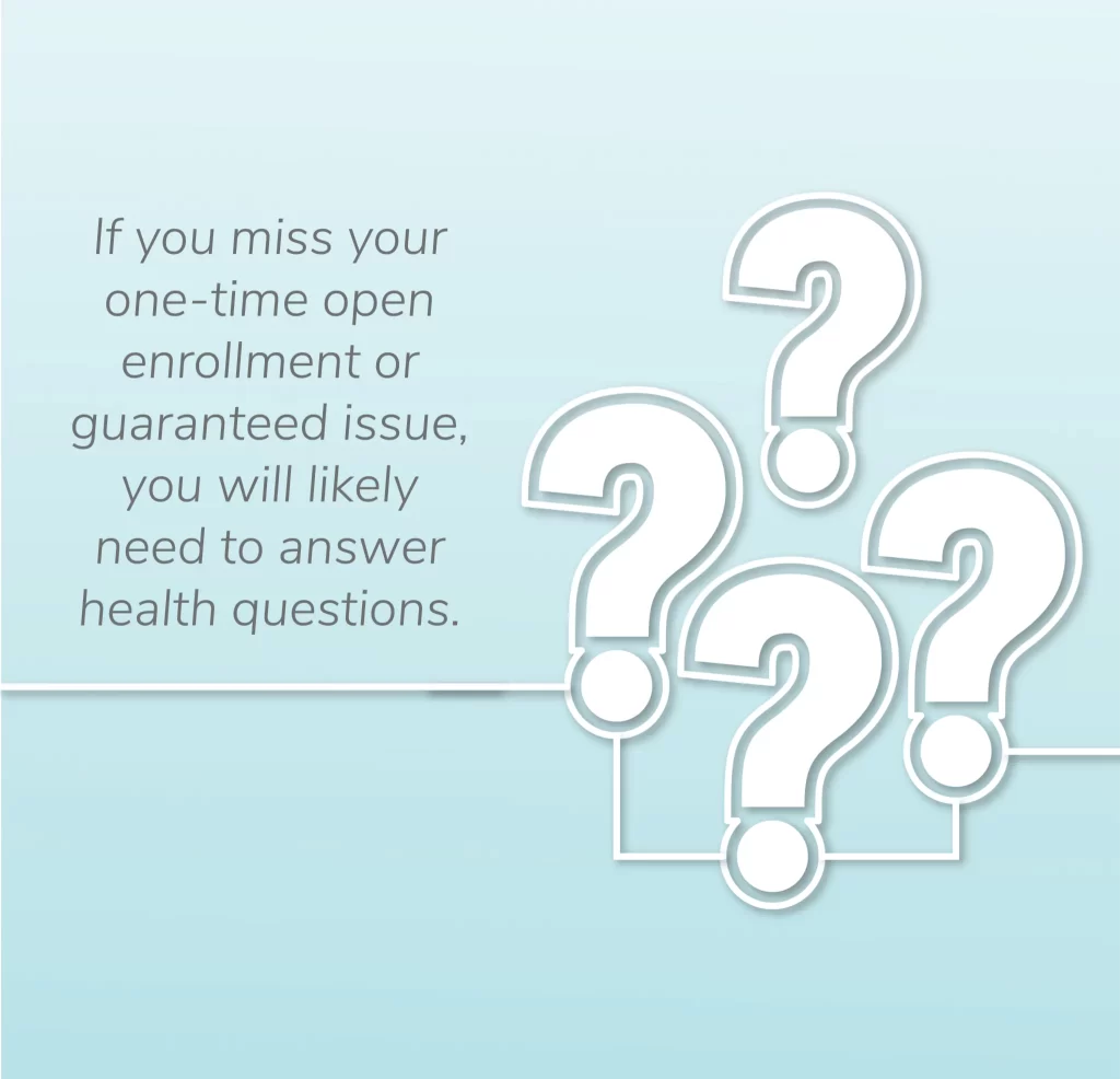 Keep in mind that during your one-time open enrollment window, you are guaranteed the right to purchase a Medicare supplement plan. Your health status does not matter when you buy a plan during this six-month window.